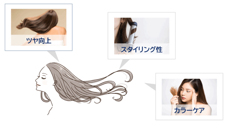 スキンケアでは質感向上や自然なツヤ感に役立つ特徴ですが、ヘアケアにも応用が可能です(図1)。