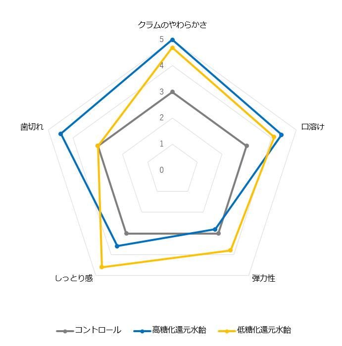 さらに、還元水飴の種類によって以下の特徴が表れた。