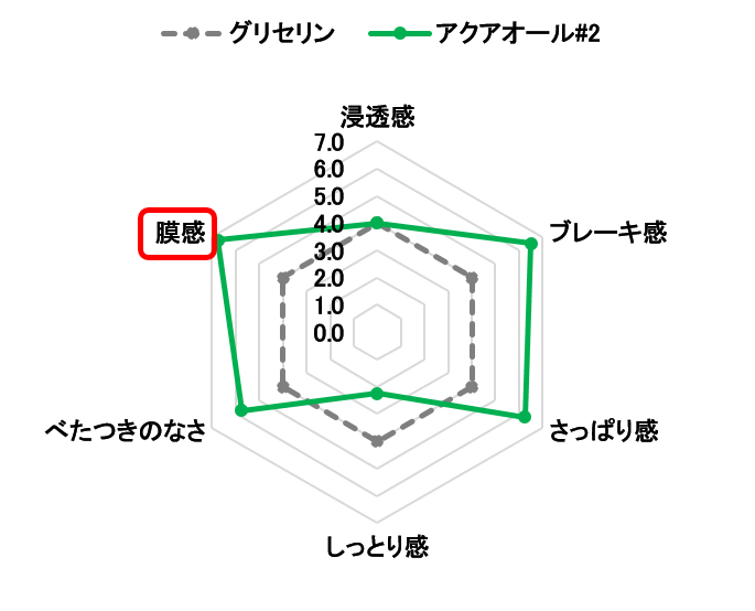 アクアオール#2を使用した場合、グリセリンを使用した場合と比べ、