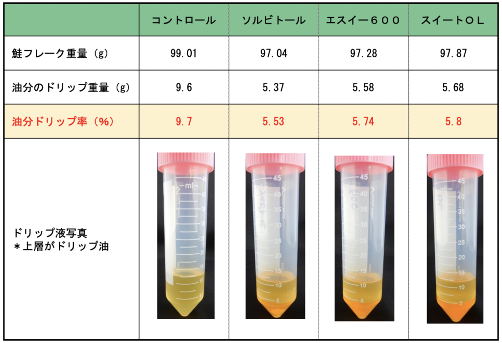 図1 サケフレークにおける油分のドリップ量比較