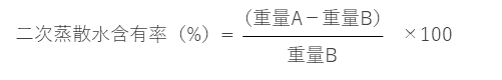 以下の式より二次蒸散水含有率(%)を求めた。 ※二次蒸散水含有率:180℃の加熱で飛ぶ水分の割合