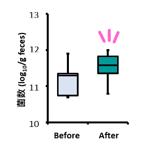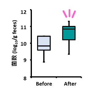 健常な成犬ビーグル (約10kg) に対し1日2gのケストースを8週間投与し、腸内細菌数の定量および代謝物である酪酸濃度を測定した。