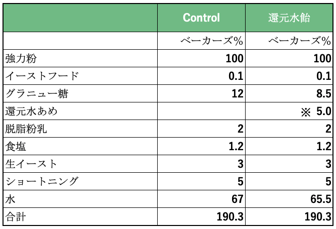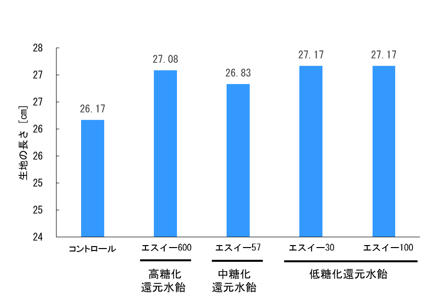 砂糖の一部を還元水飴と置き換える事によって、パン生地の伸展性向上効果が得られます!